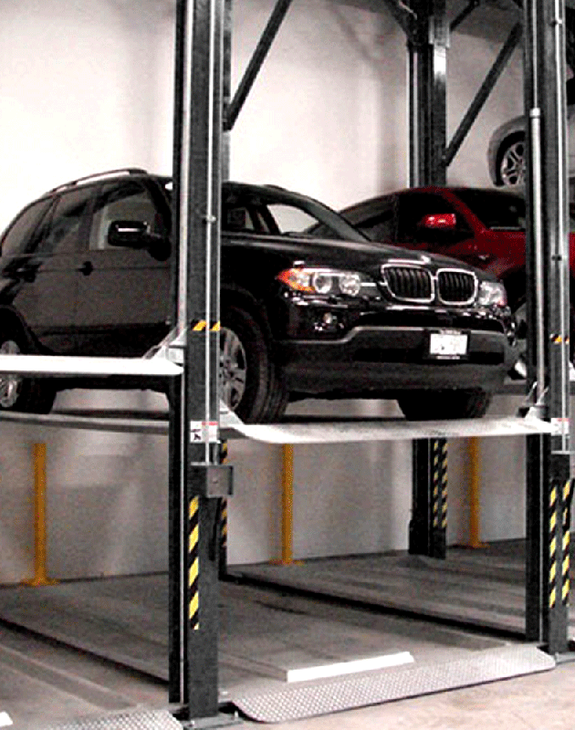 Es un modelo sencillo y económico que puede ser implementado en proyectos de construcción de estacionamiento en los que se pretende prescindir de una rampa de concreto. Tiene una operación sencilla y solo consume energía eléctrica para el recorrido en ascensor, se pueden instalar puertas manuales o automáticas en modelos abatibles o bipartibles tipo guillotina.